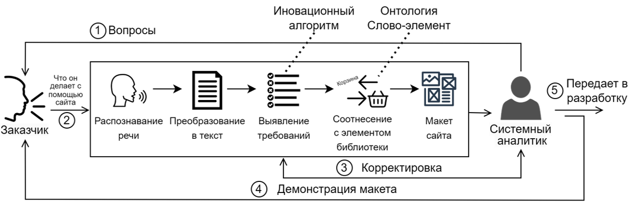 «Прямо во время интервью аналитика с заказчиком наша система выделяет ключевые слова и соотносит их со словарем визуальных элементов. К концу интервью система уже представляет концептуальный макет проекта, который аналитик уже может корректировать при необходимости. Количество начальных итераций снижается до одной-двух, и новый заказ быстрее уходит проектировщикам. Наш сервис поможет небольшим IT-компаниям повысить маржинальность проектов в разы, а их заказчикам с самого начала получать точное представление о конечном продукте», — поделился Артём Борисов.